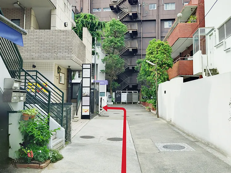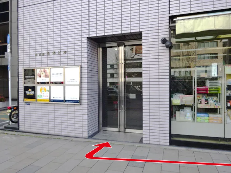 ニキビ治療院のビルを過ぎてすぐ右折します。