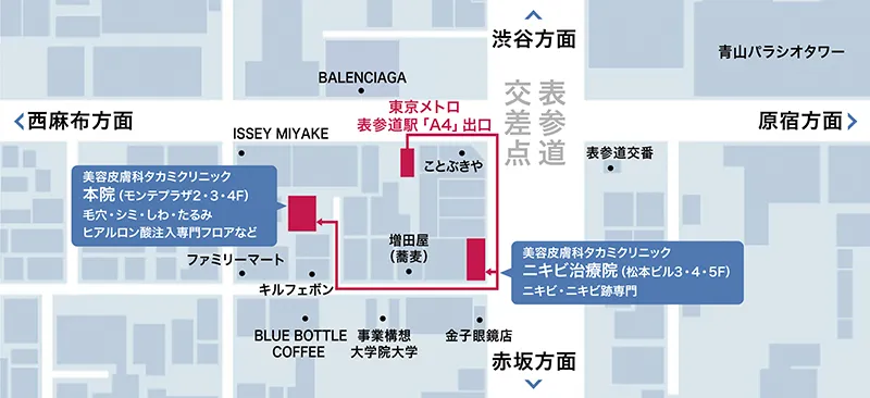 表参道駅「A4」出口から地上に出てすぐ右へ進みます。