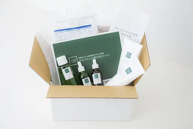 同封の⼿順書に従って、当院独⾃のお薬やコスメを使った⾃宅治療をスタートしていただきます。