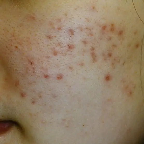 ニキビ跡は、炎症性ニキビの発⽣や治癒の過程で、⻑期的に消えない「傷」や「⾊み」が顔に残っている状態です。