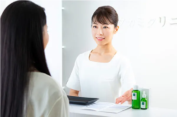 次回の治療のご予約を承ります。また、本日の診察、施術、オリジナル治療薬、スキンケア等の会計を行ないます。