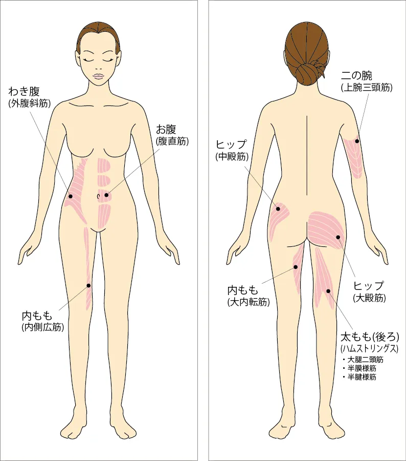 効果の現れ方には個人差があります。複数回の施術を週2回のペースで継続することで筋肉をつくり、メリハリのあるボディラインに整えることが出来ます。