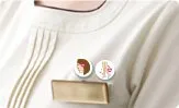 - ほうれい線にヒアルロン酸注入をしているスタッフがつけているバッジ