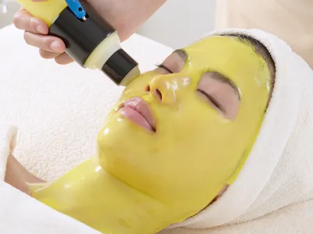 お顔だけでなく、首や唇まで各部位を細部にわたって丁寧に導入していきます(黄色い色はビタミンそのものの色です)。