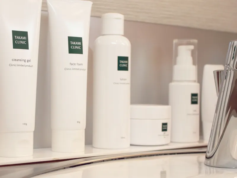 施術の終了後、スキンケア・UVケアをしていただきます。なおその際、タカミクリニック院内処方コスメをお試しいただけます。またご希望に応じて、スタッフよりスキンケアについてアドバイスをさせていただきます。