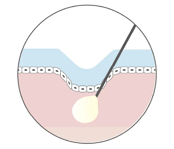 当院のリジュラン注射では、気になるしわとその周囲に製剤をダイレクトに注入する方法で治療を行います。お悩みの部位に有効成分が浸透し、直接働きかけるため、ピンポイントでしわの目立ちを改善していきます。