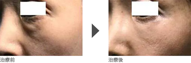 外科手術(脱脂)では、一度にすべての脂肪を取り除くため、施術後に新たなしわやたるみが出来る可能性がありましたが、当院の眼窩脂肪溶解注射では徐々に脂肪を減少させることで、新たな皮膚のたるみやしわを作らずに、目の下のたるみを改善できます。